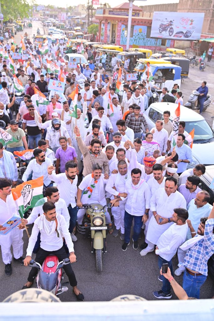 बीकानेर // अखिल भारतीय कांग्रेस कमेटी द्वारा घोषित “संविधान बचाओ रैली” अभियान देशभर में चलाया जा रहा है। इसी क्रम में राजस्थान प्रदेश कांग्रेस कमेटी के निर्देशानुसार जिला कांग्रेस कमेटी की ओर से शहर अध्यक्ष यशपाल गहलोत, देहात अध्यक्ष बिशनाराम सियाग व रैली प्रभारी विधायक डूंगरराम गेदर के संयुक्त नेतृत्व में तथा पीसीसी जिला प्रभारी विधायक शिमला नायक के सानिध्य में “संविधान बचाओ रैली” (वाहन रैली) बीकानेर के रतन बिहारी पार्क से अम्बेडकर सर्किल तक आयोजित हुई।