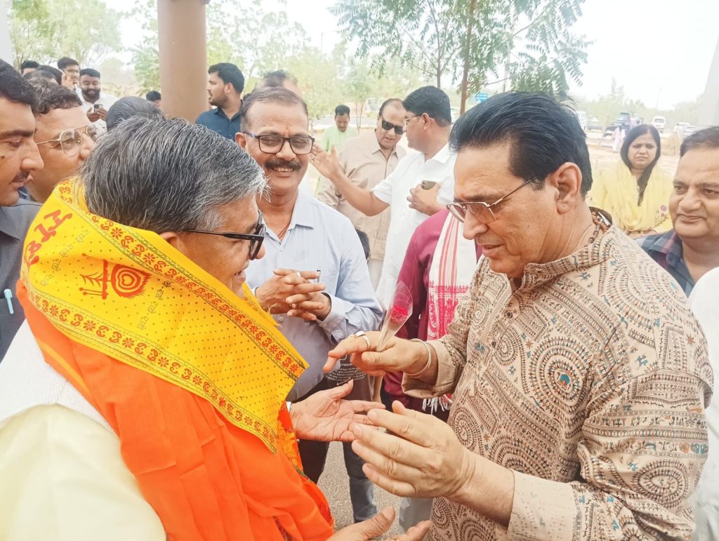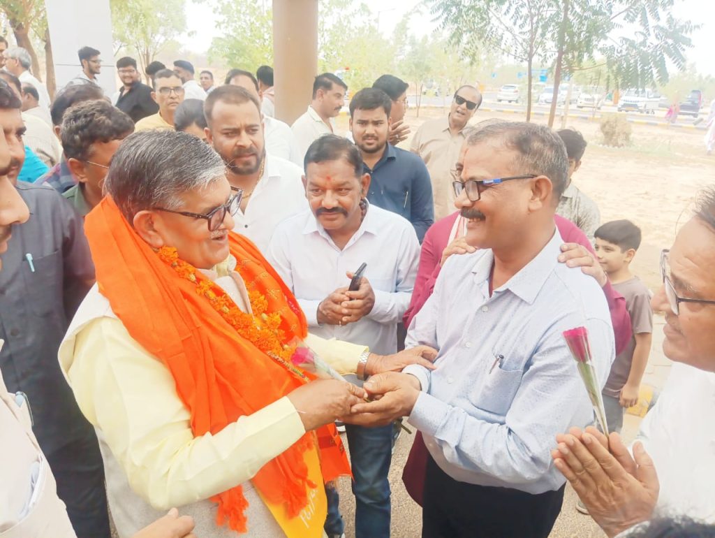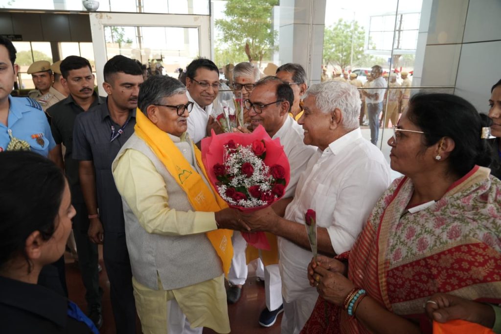 बीकानेर // पंजाब के राज्यपाल गुलाबचंद कटारिया शुक्रवार को बीकानेर पहुँचे। वे भाजपा के संस्थापक सदस्य रहे स्वर्गीय ओम आचार्य की प्रथम पुण्यतिथि पर यहां रविंद्र रंगमंच पर शुक्रवार की शाम को आयोजित होने वाले श्रद्धांजलि सभा में भाग लेने के लिए बीकानेर आये हैं। राज्यपाल कटारिया ने नाल हवाई अड्डे पर ओम आचार्य के परिजनों से मुलाकात की। जहां उनका भाजपा के पूर्व जिला अध्यक्ष विजय आचार्य की अगवाई में स्वागत किया गया। इस दौरान ओम प्रकाश आचार्य स्मृति संस्थान के अध्यक्ष श्रीभगवान अग्रवाल व महामंत्री बनवारी लाल शर्मा ने दुपट्टा ओढ़ाकर व बुके भेंट कर स्वागत व अभिनंदन किया। इस दौरान भाजपा जिला अध्यक्ष सुमन छाजेड़, भाजपा देहात के अध्यक्ष श्याम पंचारिया, डूंगरगढ़ विधायक ताराचंद सारस्वत, भाजपा नेता सत्य प्रकाश आचार्य, गोकुल जोशी, दीपक पारीक, मोहन सुराणा, संपत पारीक हनुमान सिंह चावड़ा, सीताराम भाम्भू, भवानी शंकर आचार्य, गोपाल गहलोत, कमल आचार्य, सांगीलाल गहलोत, महेश व्यास, रमजान अब्बासी, अविनाश चन्द्र व्यास, सतपाल सिंह शेखावत, राजकीय लोक अभियोजक राधेश्याम सेवग, तेजकरण गहलोत, चंद्र मोहन जोशी, महावीर रांका, लोकेश चतुर्वेदी, एडवोकेट जगदीश आचार्य, नरेंद्र आचार्य, एकनाथ आचार्य सहित जिला कलेक्टर व पुलिस अधीक्षक आदि मौजूद थे।