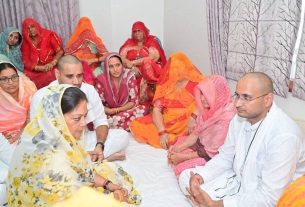 बीकानेर // भाजपा नेताओं ने आज नागौर के निकट खींवसर गांव में चिकित्सा मंत्री गजेंद्र सिंह खींवसर की पत्नी स्व प्रीति कुमारी व मेड़ता के निकट टेहला गांव में राजस्थान धरोहर प्राधिकरण के अध्यक्ष ओंकार सिंह लखावत की धर्मपत्नी रतन कंवर के निधन पर उनके पैतृक गांव जाकर निधन पर शोक व्यक्त कर दिवंगत के चित्र पर पुष्पांजलि कर श्रद्धांजलि दी।