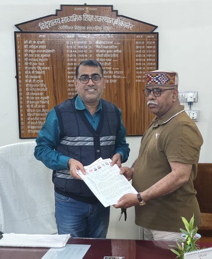 बीकानेर // शिक्षा विभागीय कर्मचारी संघ के प्रदेशाध्यक्ष कमल नारायण आचार्य ने अतिरिक्त निदेशक शेलेन्द्र देवड़ा से मुलाकात की तथा उन्हें विभिन्न मांगों के समर्थन में ज्ञापन सौंपा।