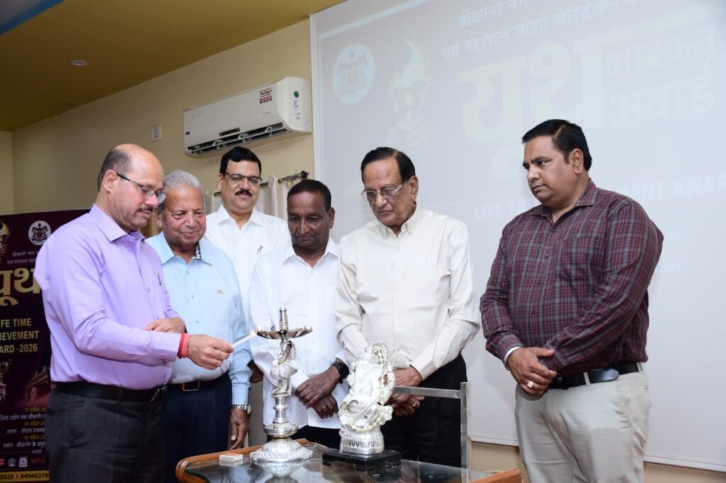 बीकानेर // नगर स्थापना दिवस के अवसर पर जिला उद्योग संघ सभागार में आयोजित यूथ आइकॉन अवार्ड समारोह में युवा ऊर्जा व अनुभव का संगम दिखाई दिया। शहर की प्रतिभाओं का भव्य सम्मान समारोह यादगार बन गया। जब विभिन्न क्षेत्रों की प्रतिभाओं को मंच पर बुलाया गया तो सभागार रह रहकर तालियों से गूंजता रहै। अवसर तबा नगर स्थापना दिवस समारोह समिति और नंदलाल जोशी चैरिटेबल फाउंडेशन के संयुक्त तत्वावधान में आयोजित हुए यूथ आइकन अवार्ड समारोह का । इस आयोजन में 9 वरिष्ठ हस्तियों को लाइफटाइम अचीवमेंट अवार्ड और 27 युवाओं को यूथ आइकॉन अवार्ड से सम्मानित किया गया।