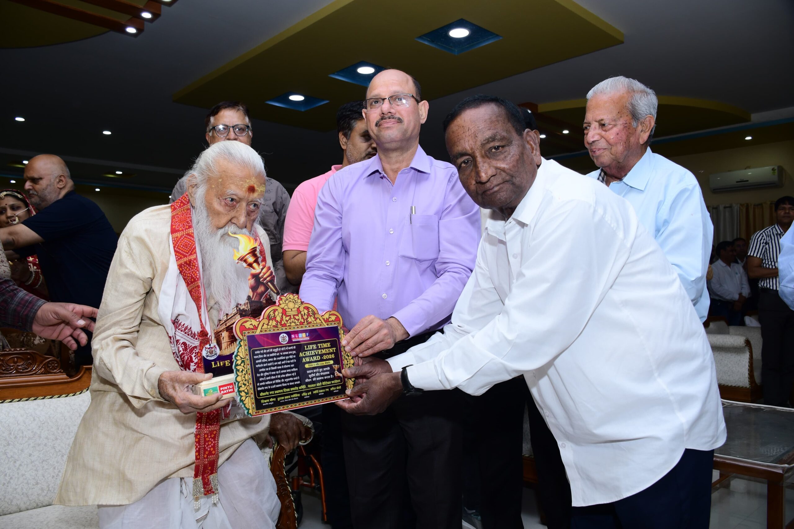 धर्म व अध्यात्म के सुनहरे हस्ताक्षर शतायु कर्मकांडी विद्वान पंडित नथमल पुरोहित को दिया लाइफ टाइम अचीवमेंट अवार्ड