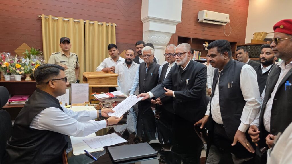 बीकानेर // बीकानेर में उच्च न्यायालय की स्थायी बेंच की मांग को लेकर बार एसोसिएशन का आंदोलन लगातार जारी है। इसी क्रम में शुक्रवार को बार अध्यक्ष अजय कुमार पुरोहित के नेतृत्व में अधिवक्ताओं ने “हाईकोर्ट बेंच मांग नहीं, अधिकार है” के बैनर तले 196वां ज्ञापन सौंपा। अधिवक्ताओं ने जिला कलेक्टर निशांत जैन को राज्यपाल के नाम तथा जिला न्यायाधीश को राजस्थान उच्च न्यायालय के मुख्य न्यायाधिपति के नाम ज्ञापन प्रस्तुत किया।