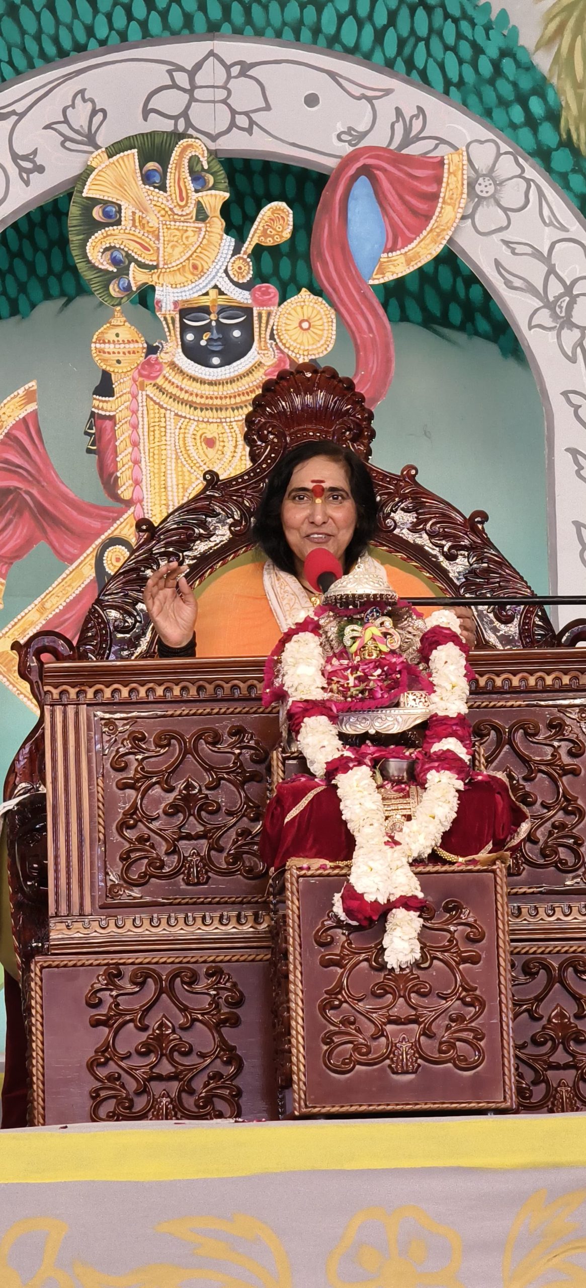 साध्वी ने कहा कि छल कपट करने वाले लोगों के सामने तो अपने को खुश दिखाते हैं लेकिन वास्तव में वे हमेशा नाखुश ही रहते हैं। उन्होंने कहा कि हमें हमेशा अच्छा सोचना चाहिए। विशेष कर गर्भवती महिला को तो अपने गर्भ काल के दौरान भगवान का ही स्मरण करते रहना चाहिए। ऐसा करने वाली महिला अभिमन्यु जैसे पुत्र को जन्म देती है। साध्वी ऋतंभरा ने कहा, अपने पराए की पहचान विपत्ति के समय ही होती है। विपत्ति में जो साथ खड़ा रहे वहीं अपना है। बाकी तो मौका परस्त होते है। उन्होंने गांधारी का उदाहरण देते हुए कहा कि उसने पतिधर्म में अपनी आंखों पर ऐसी पट्टी बांध ली जिससे कि उसे सही गलत का भान ही नहीं रहा। वो सही को भी गलत मान रही थीं। भगवान खुद करते हैं अपने भक्त का ध्यान करते हैं। भगवान श्री कृष्ण ने भीष्म पितामह का ध्यान किया था। श्रीकृष्ण ने पांडुओं को शव शय्या भी लेटे भीष्म पितामह से सीख लेने की बात कही।
