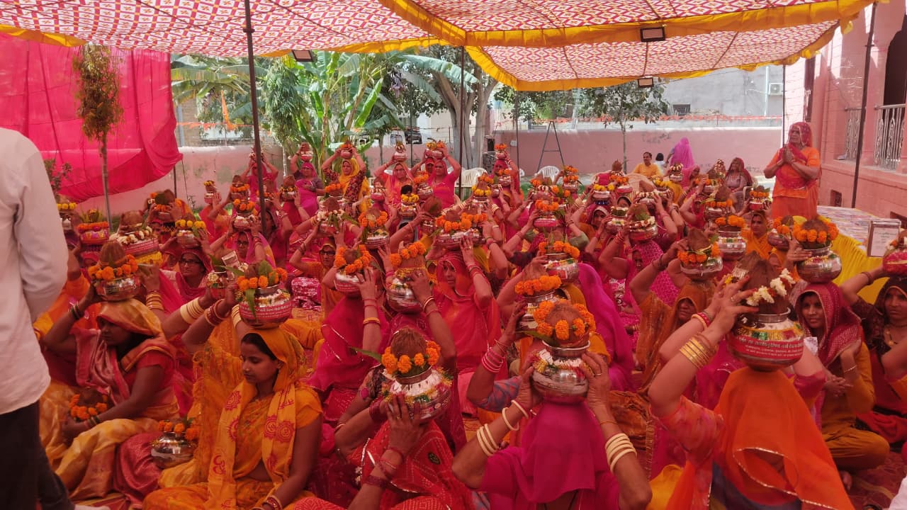 बीकानेर // शांतिकुंज हरिद्वार के तत्वावधान में बीकानेर के तिलक नगर क्षेत्र में आयोजित नौ कुंडीय गायत्री महायज्ञ का शुभारंभ भव्य कलश यात्रा के साथ हुआ। इस अवसर पर वृद्ध हनुमान मंदिर से विधिवत कलश पूजन कर यात्रा प्रारंभ की गई। यात्रा में माताएं-बहनें सिर पर 108 कलश धारण कर जन-जागरण गीत गाते हुए और “युग निर्माण जय घोष” के नारों के साथ यज्ञ में सहभागिता के लिए लोगों को आमंत्रित करती हुई आगे बढ़ीं।