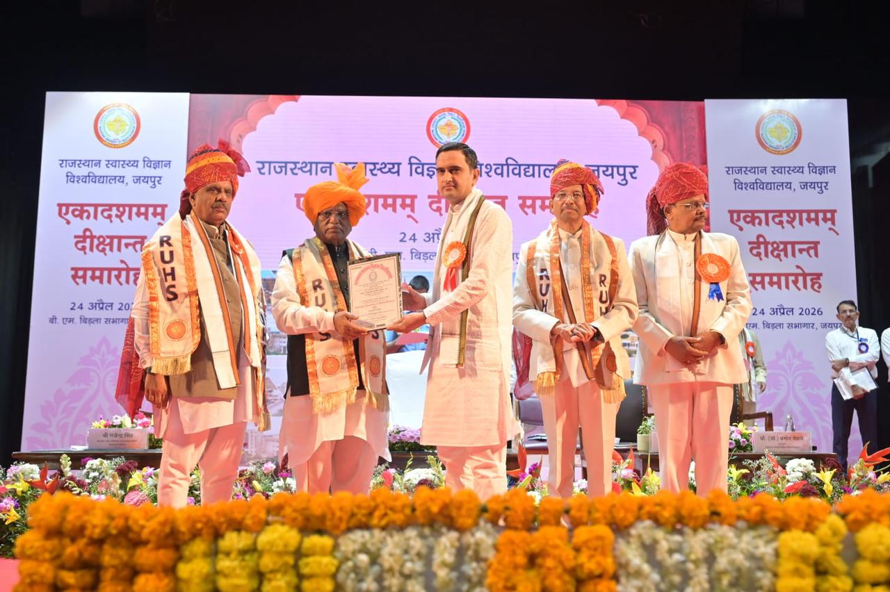 पुरोहित ने अपना शोध ‘डवलपमेंट एंड इवुलेशन ऑफ सेमी सोलिड पाॅलीहर्बल फार्मूलेशन फाॅर वाउंड हीलिंग’ विषय पर शोध किया है। विश्वविद्यालय द्वारा सितंबर 2025 में इस शोध कार्य की स्वीकृति प्रदान की गई थी। उनके इस शोध का मुख्य उद्देश्य घाव भरने के लिए एक प्रभावी और सुरक्षित पॉलीहर्बल फॉर्मूलेशन तैयार करना और उसका मूल्यांकन करना था, जो चिकित्सा क्षेत्र, विशेष रूप से फार्मेसी के क्षेत्र में महत्वपूर्ण योगदान माना जा रहा है। समारोह में चिकित्सा एवं स्वास्थ्य मंत्री गजेन्द्र सिंह खींवसर सहित अन्य अतिथि मौजूद रहे।