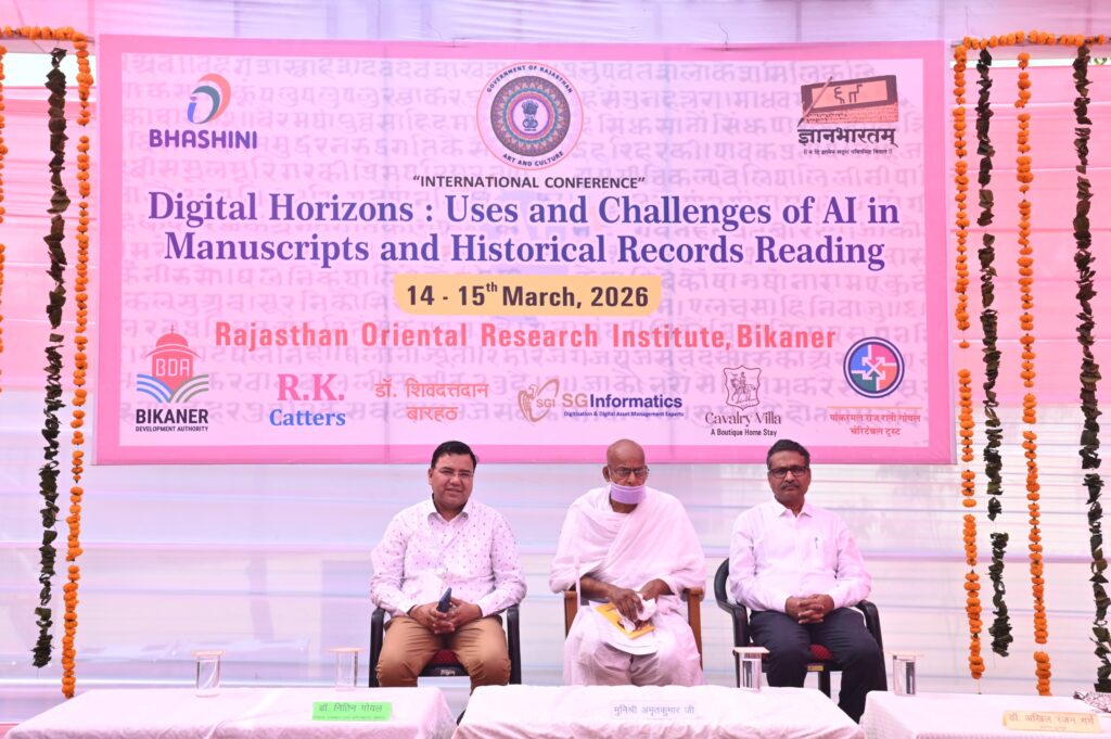 बीकानेर // राजस्थान प्राच्य विद्या प्रतिष्ठान द्वारा ‘पाण्डुलिपियों के अध्ययन में ए.आई. की उपयोगिता’ विषयक दो दिवसीय अंतर्राष्ट्रीय कांफ्रेंस शनिवार को शुरू हुआ। यह प्रदेश का अपने तरह का पहला आयोजन है। सम्मेलन का शुभारंभ मुनि अमृतकुमार के सन्निध्य में हुआ। उन्होंने आधुनिक ज्ञान के प्रसार में कृत्रिम बुद्धिमता के उपयोग और इसकी सीमाओं पर विचार व्यक्त किए।